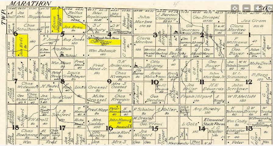 The Hamus family had immigrated from Luxembourg in 1891. The family with 7 children settled on a farm in Auburndale Township section 16.