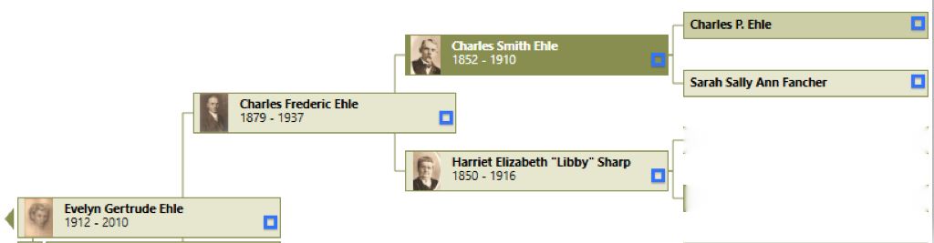 My husband’s grandmother Gertrude knew her grandmother Harriet (called Libby). Gertrude’s father, CF Ehle, passed down a family tree and some photographs to Gertrude. The Ehle family history is well documented and goes back to Colonial NY.