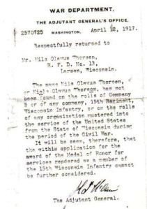 In 1917, just a year before his death, Nels would write a letter to the Adjutant General’s office describing an event that took place during the war in which he saved the life of an officer. Nels felt that his actions placed his own life in jeopardy and that he therefore was deserving of the Medal of Honor. The reply from that office was simply that they could not find his name in the roster of the soldiers of the 15th and that his request could not be further investigated for that reason.