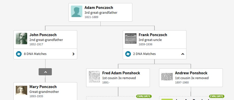The evidence is strong enough for me to conclude that John was the brother to Frank based on my DNA matches. That combined with the previously mentioned evidence makes me feel confident that John was the son of Adam Ponczoch and Augusta Wiglinski. I will, of course, keep looking for records and I hope that future DNA matches will help confirm this conclusion.