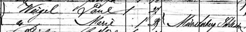 The easiest thing to do is to look at the census records available and see what was logged as the place of birth on the various census years. Looking through the records for Marie Weigel Luecke, Paul Weigel, Joseph Weigel, August Weigel, and Herman Weigel, the birthplace is overwhelmingly “Germany”. The second most common location was Prussia, and then Silesia or Schleisen was least common. Note that none of the records state Austria, Bohemia, or Czech Republic as a location.